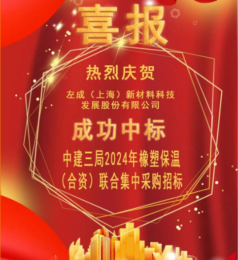 左成(上海)新材料科技發(fā)展股份有限公司成功中標中建三局2024年橡塑保溫(合資)聯(lián)合集中采購招標