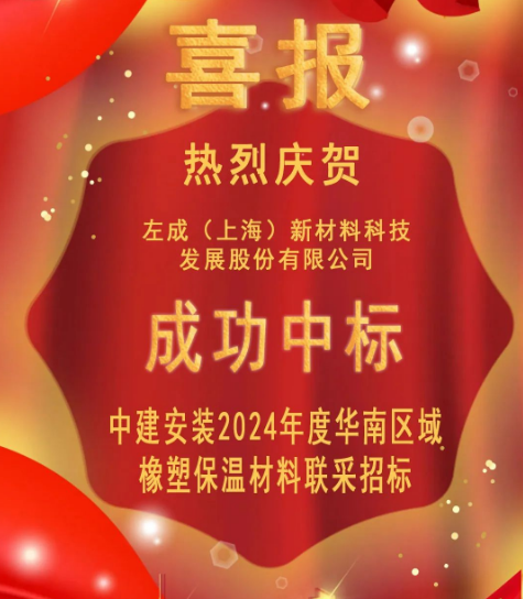 左成(上海)新材料科技發(fā)展股份有限公司成功中標中建安裝2024年度華南區(qū)域橡塑保溫材料聯(lián)采招標